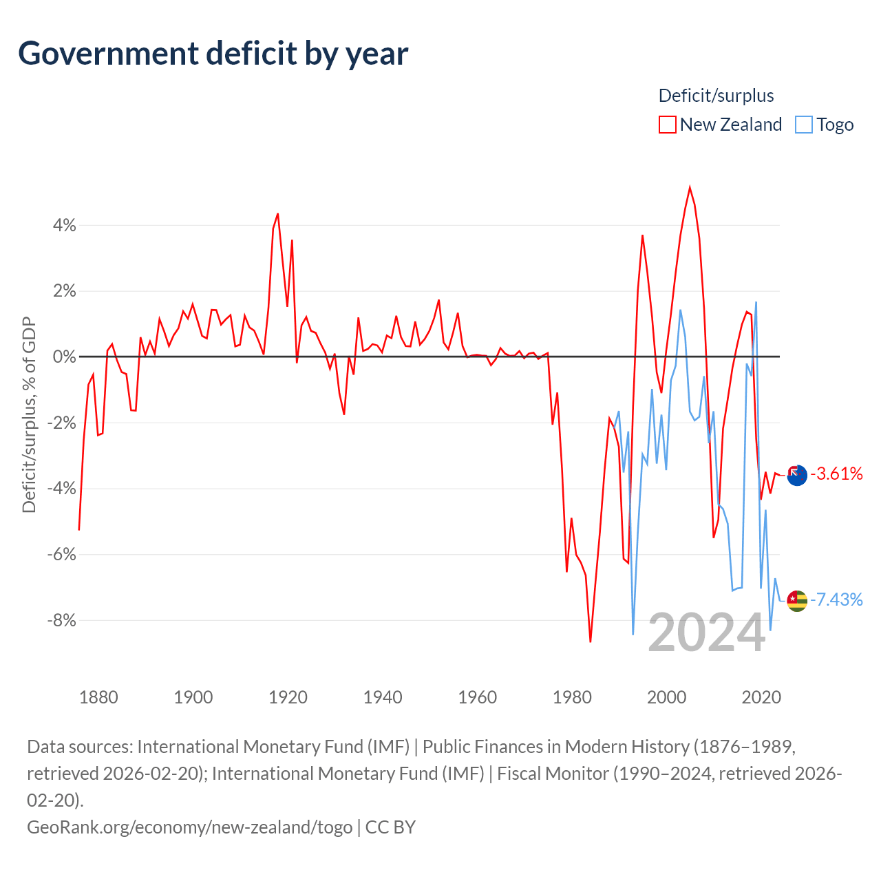 - International Monetary Fund (IMF) | Public Finances in Modern History (1876–2004, retrieved 2026-02-20)
