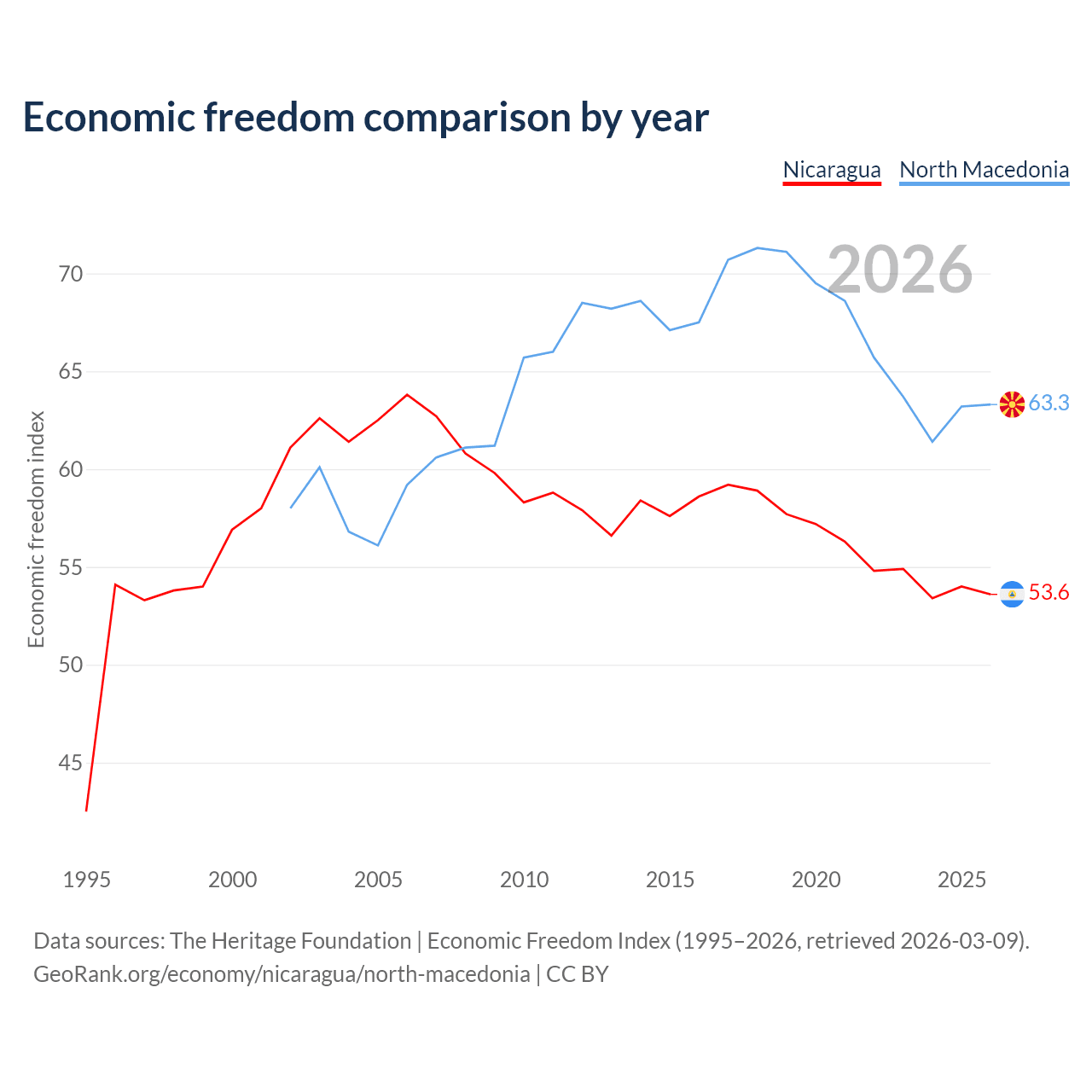 Data sources: The Heritage Foundation | Economic Freedom Index (1995–2026, retrieved 2026-03-09).