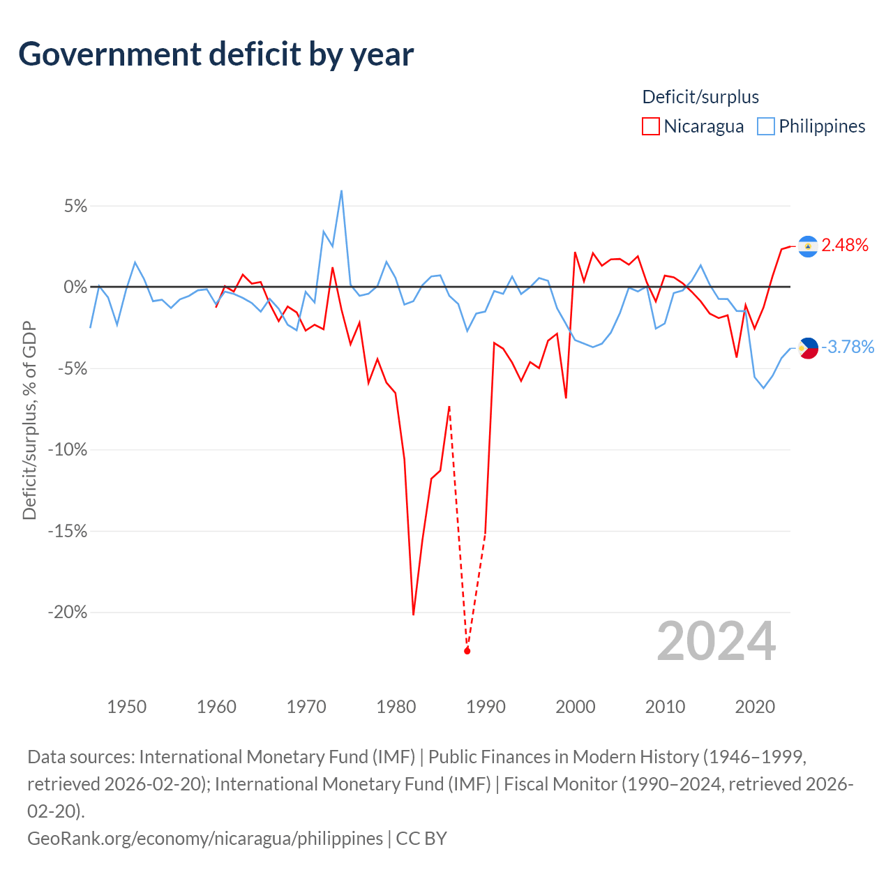 - International Monetary Fund (IMF) | Public Finances in Modern History (1946–1999, retrieved 2026-02-20)