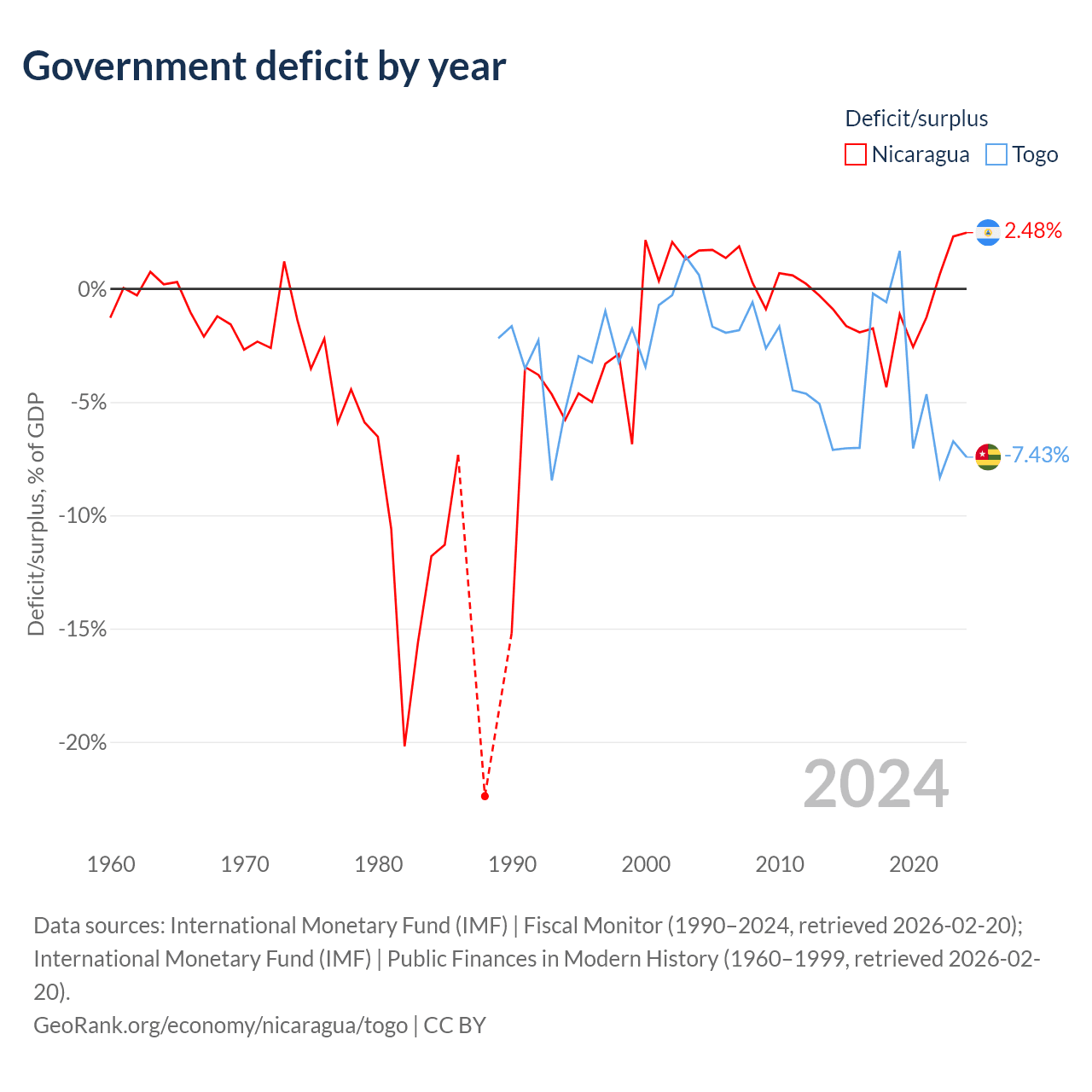 - International Monetary Fund (IMF) | Public Finances in Modern History (1960–2004, retrieved 2026-02-20)