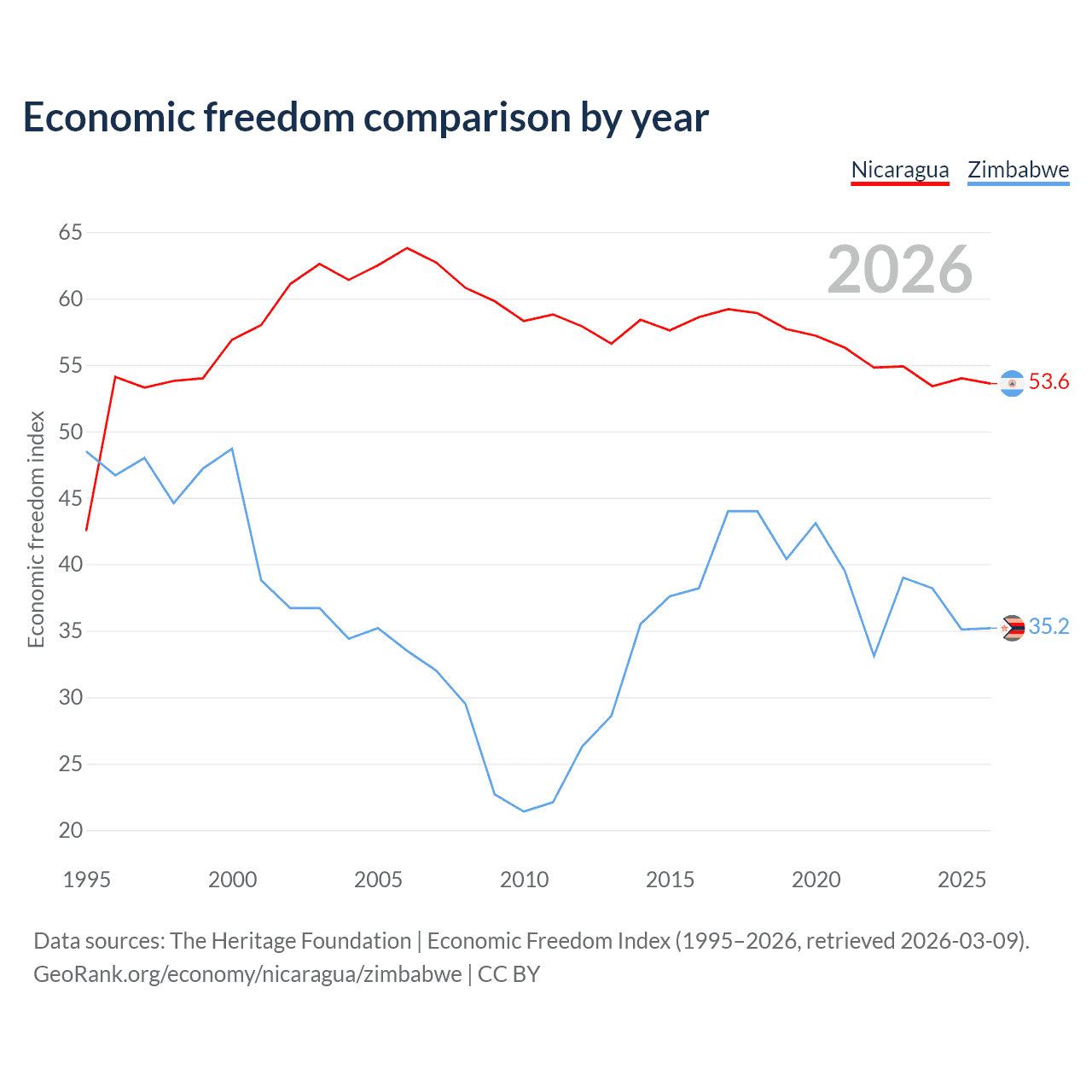 Data sources: The Heritage Foundation | Economic Freedom Index (1995–2026, retrieved 2026-03-09).