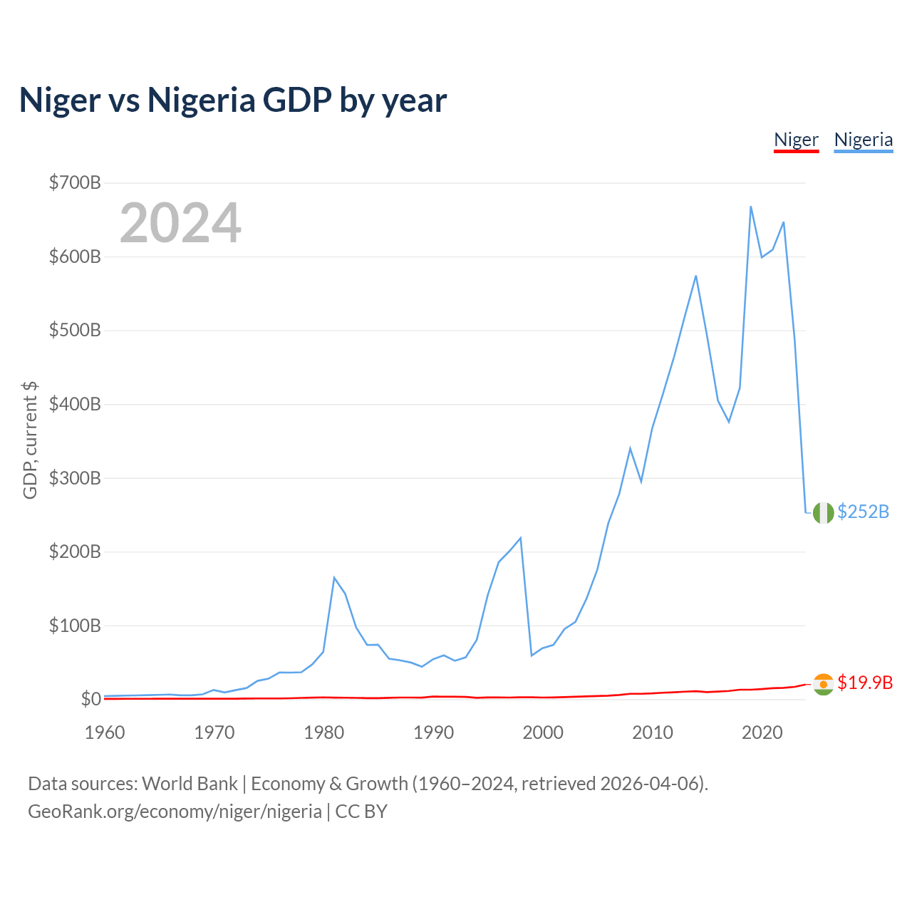 Niger vs Nigeria GDP by year