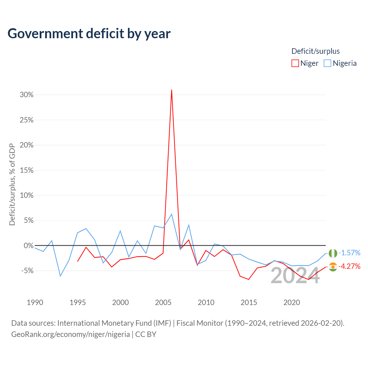 - International Monetary Fund (IMF) | Fiscal Monitor (1990–2024, retrieved 2026-02-20)