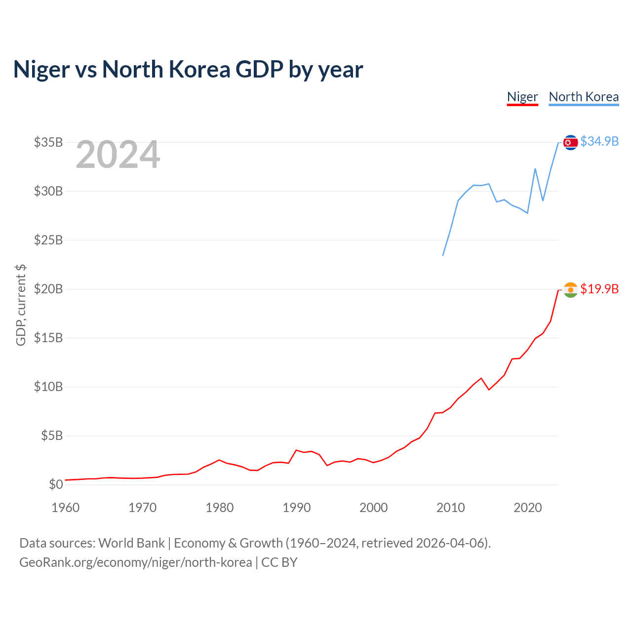 Niger vs North Korea GDP by year