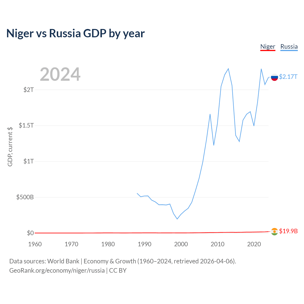 Niger vs Russia GDP by year