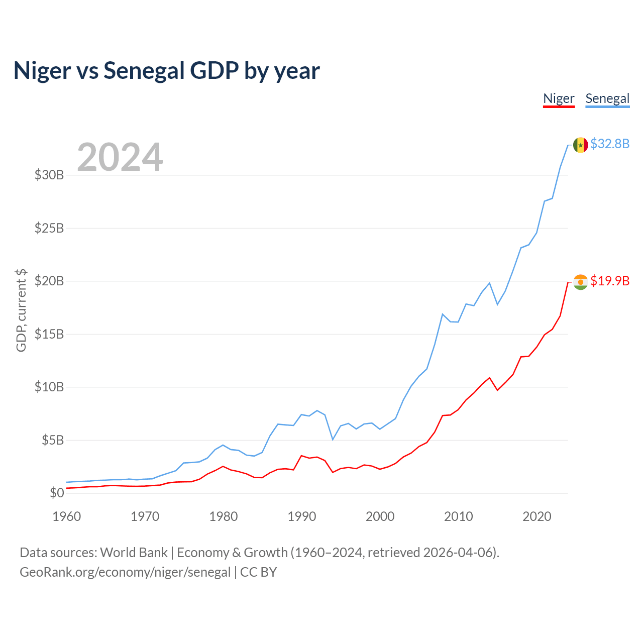 Niger vs Senegal GDP by year
