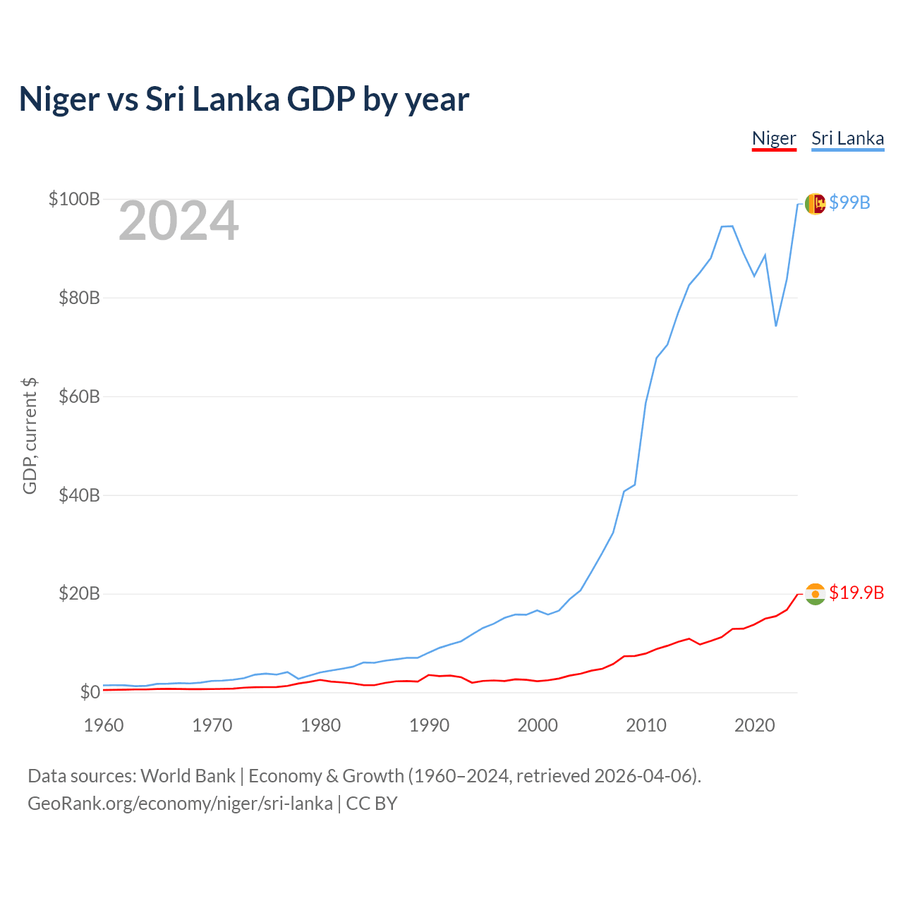 Niger vs Sri Lanka GDP by year