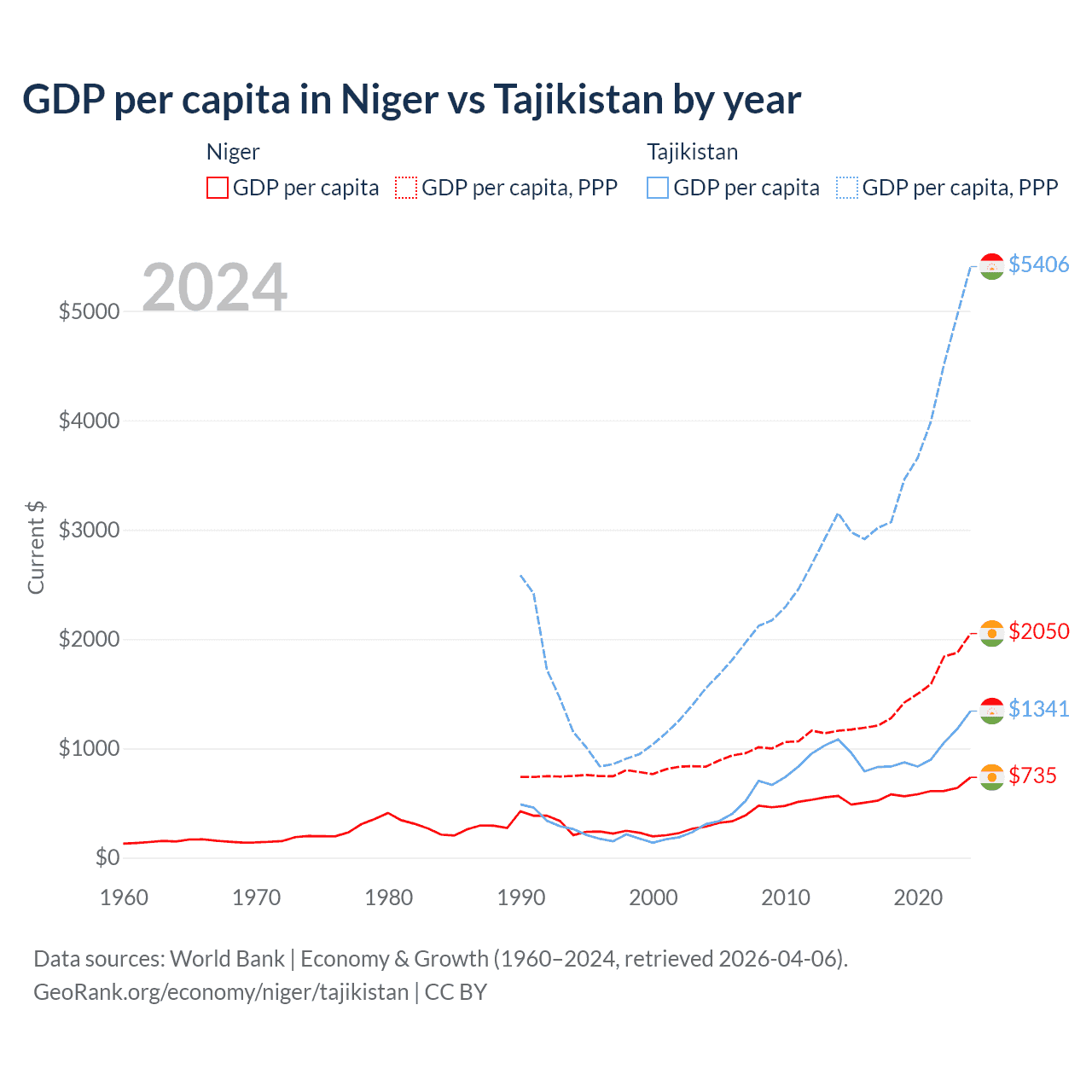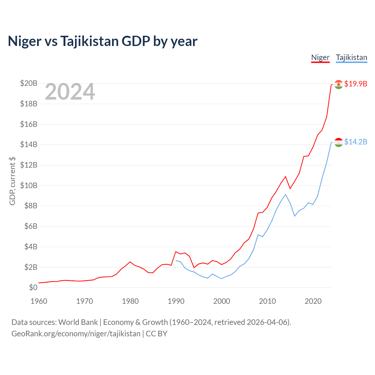 Niger vs Tajikistan GDP by year