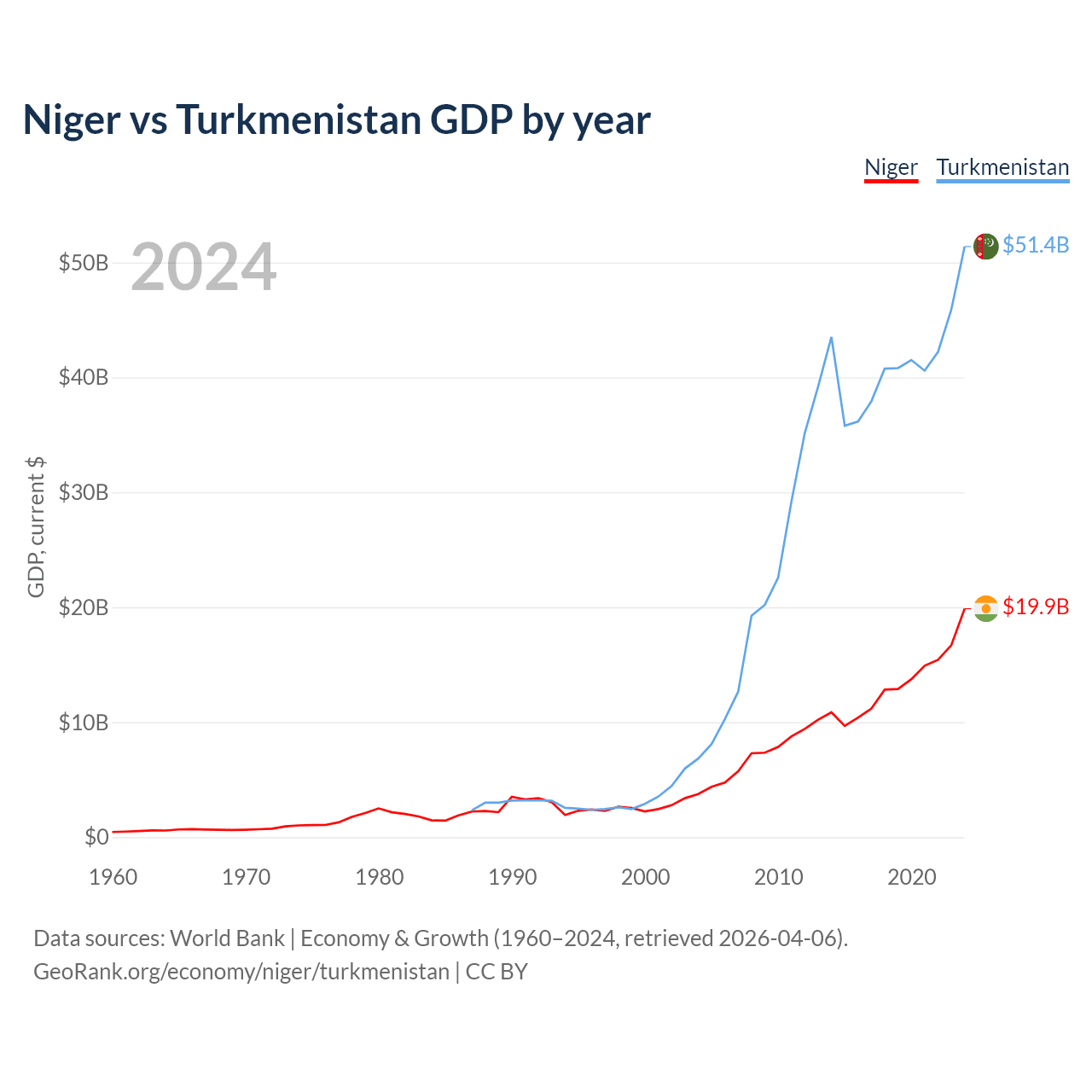 Niger vs Turkmenistan GDP by year