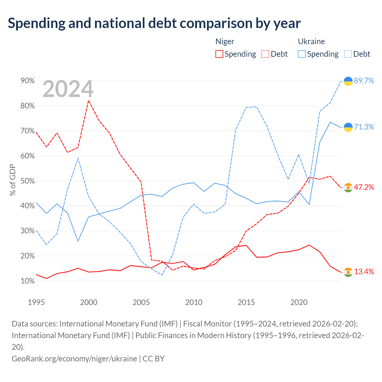 Niger has $9.39B in government debt (47.2% of GDP), compared to $171B (89.7% of GDP) in Ukraine.