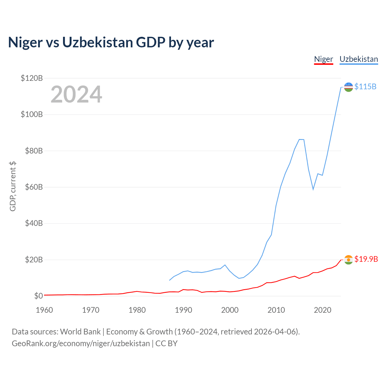 Niger vs Uzbekistan GDP by year