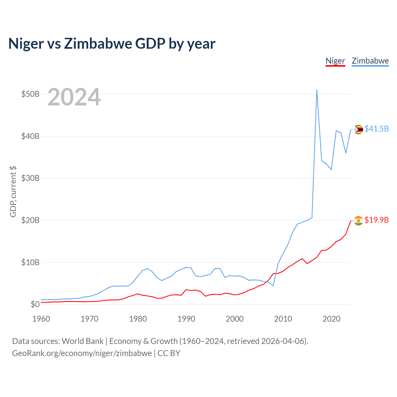 Niger vs Zimbabwe GDP by year
