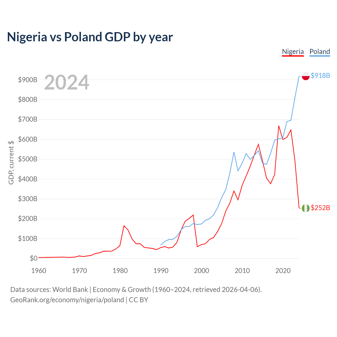 Nigeria vs Poland GDP by year