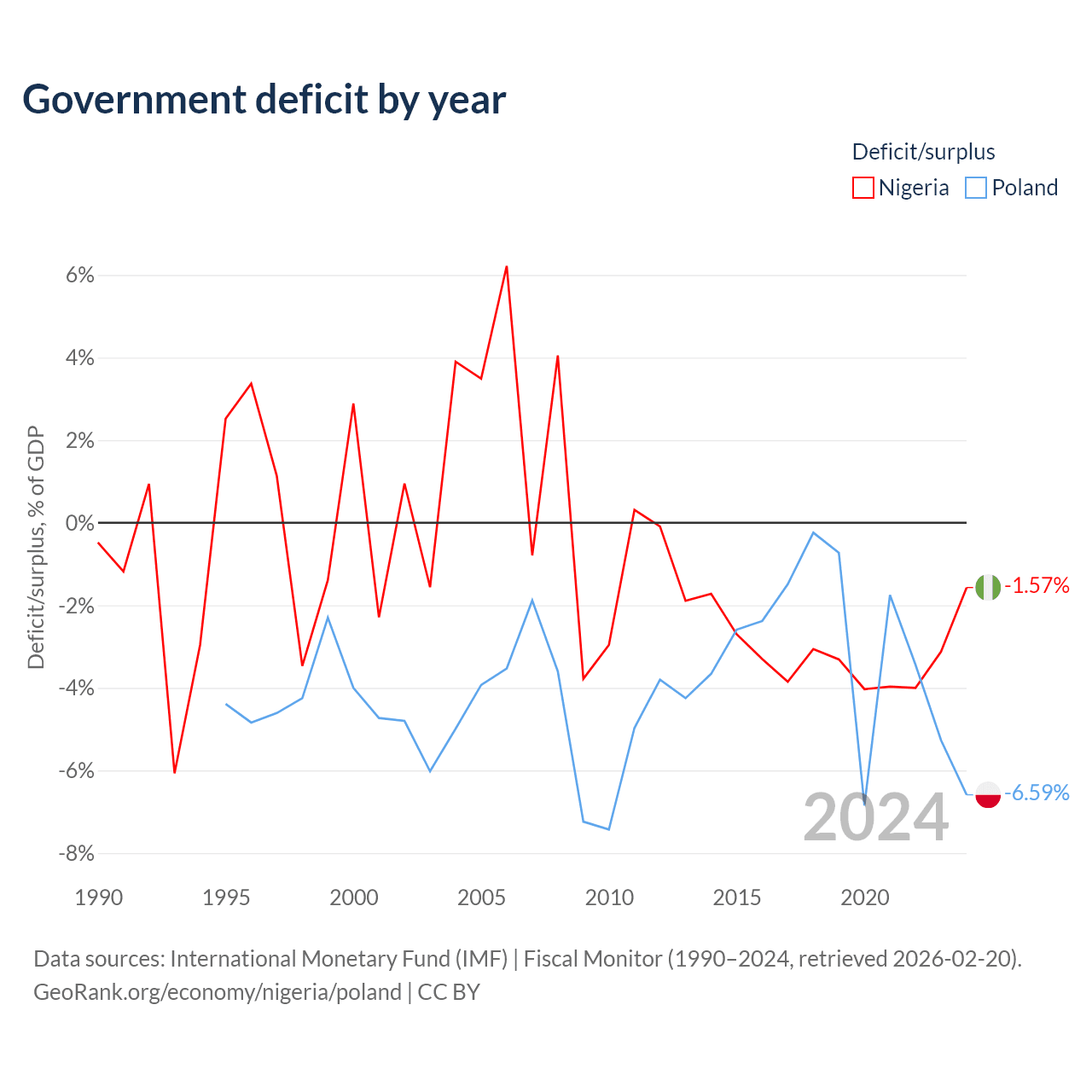 - International Monetary Fund (IMF) | Fiscal Monitor (1990–2024, retrieved 2026-02-20)