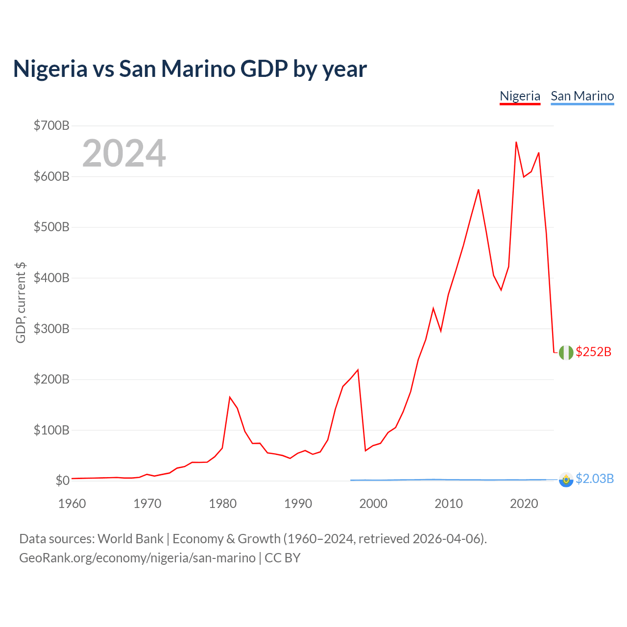 Nigeria vs San Marino GDP by year