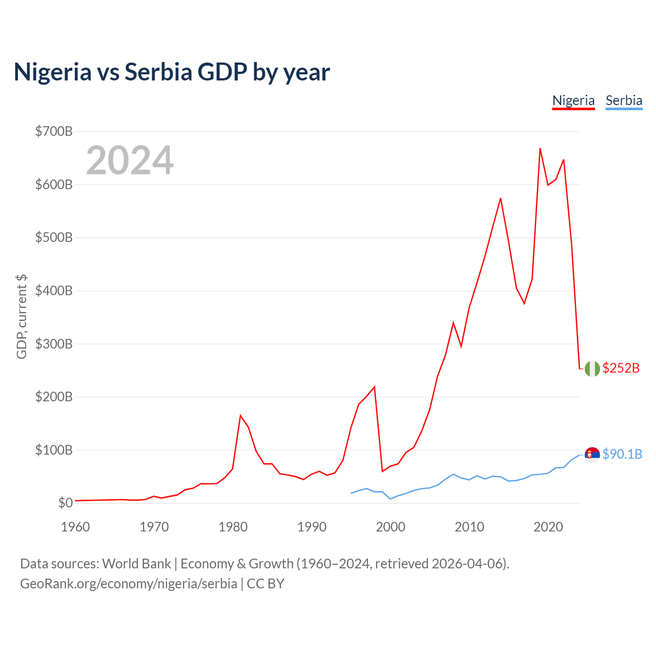 Nigeria vs Serbia GDP by year