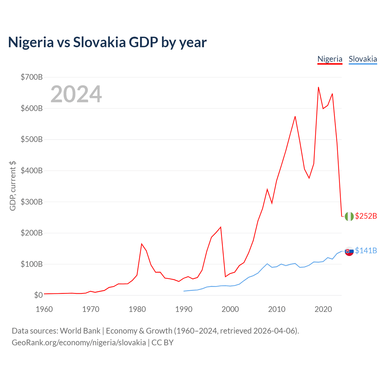 Nigeria vs Slovakia GDP by year