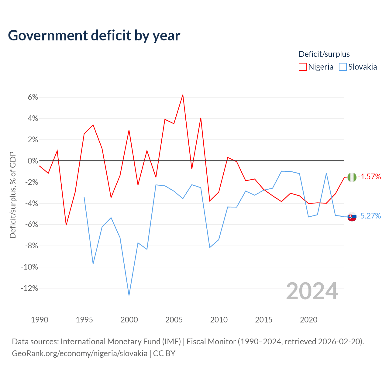 - International Monetary Fund (IMF) | Fiscal Monitor (1990–2024, retrieved 2026-02-20)