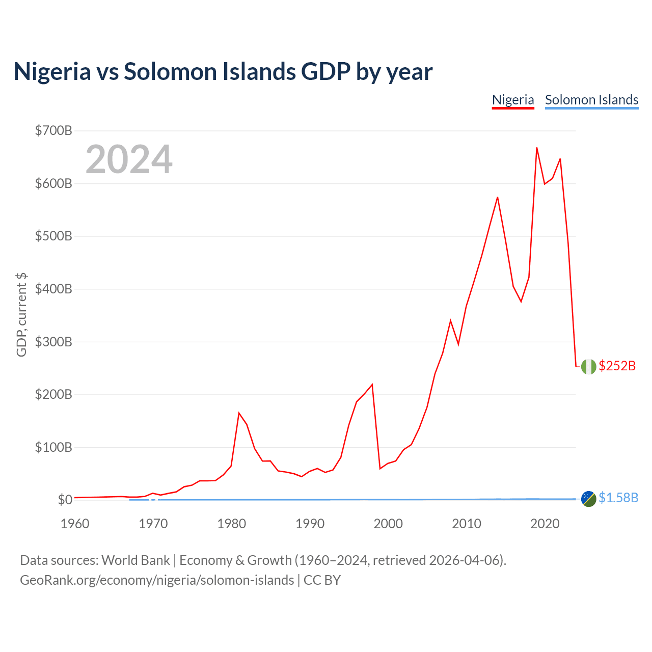 Nigeria vs Solomon Islands GDP by year