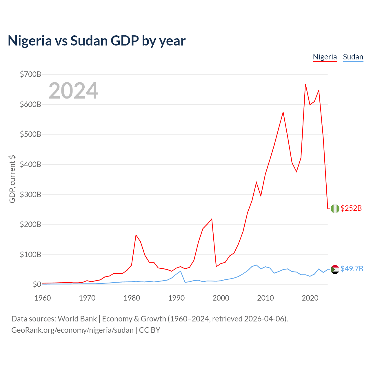 Nigeria vs Sudan GDP by year