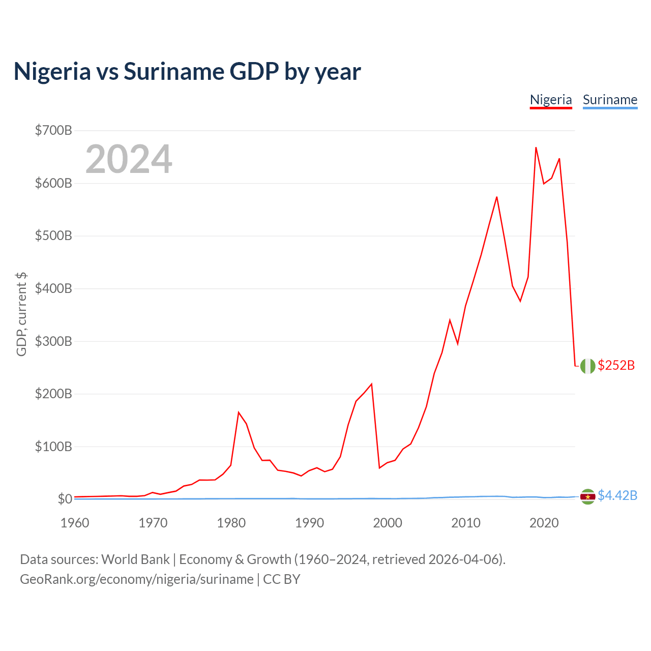 Nigeria vs Suriname GDP by year