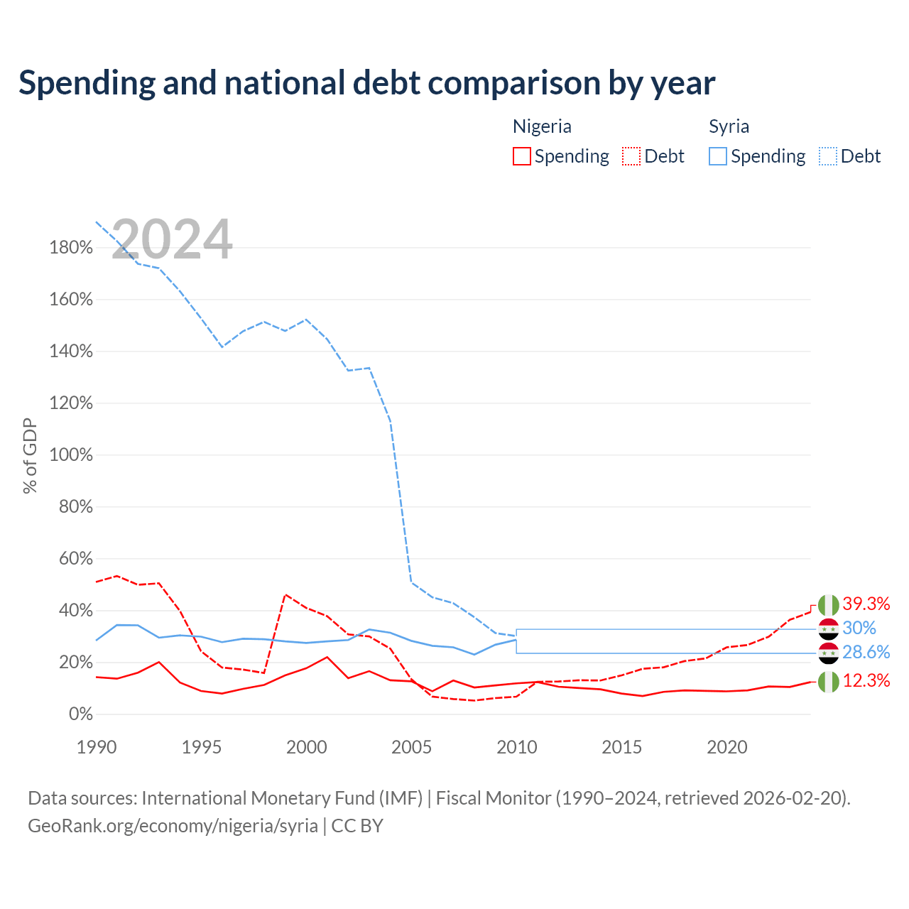 Nigeria has $99.2B in government debt (39.3% of GDP), compared to $18.4B (30% of GDP) in Syria.