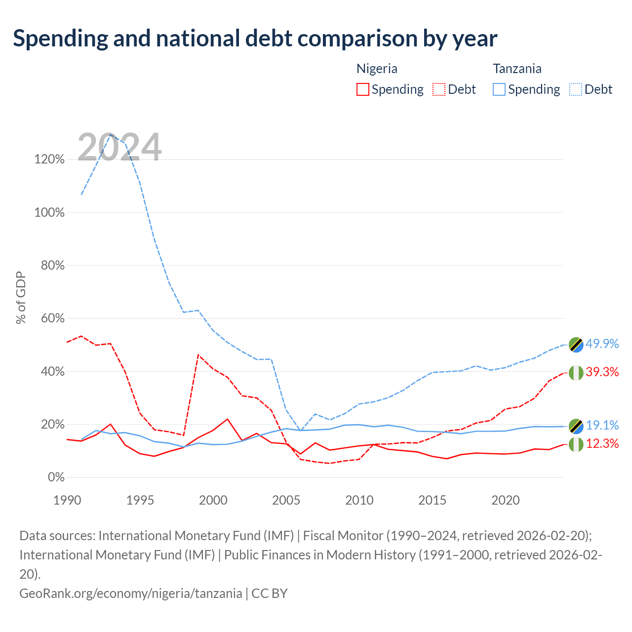 Nigeria has $99.2B in government debt (39.3% of GDP), compared to $39.3B (49.9% of GDP) in Tanzania.