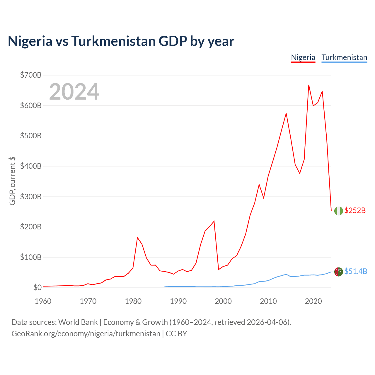 Nigeria vs Turkmenistan GDP by year