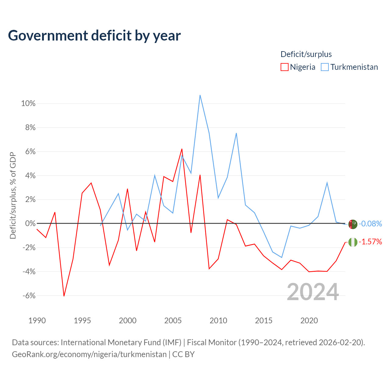 - International Monetary Fund (IMF) | Fiscal Monitor (1990–2024, retrieved 2026-02-20)