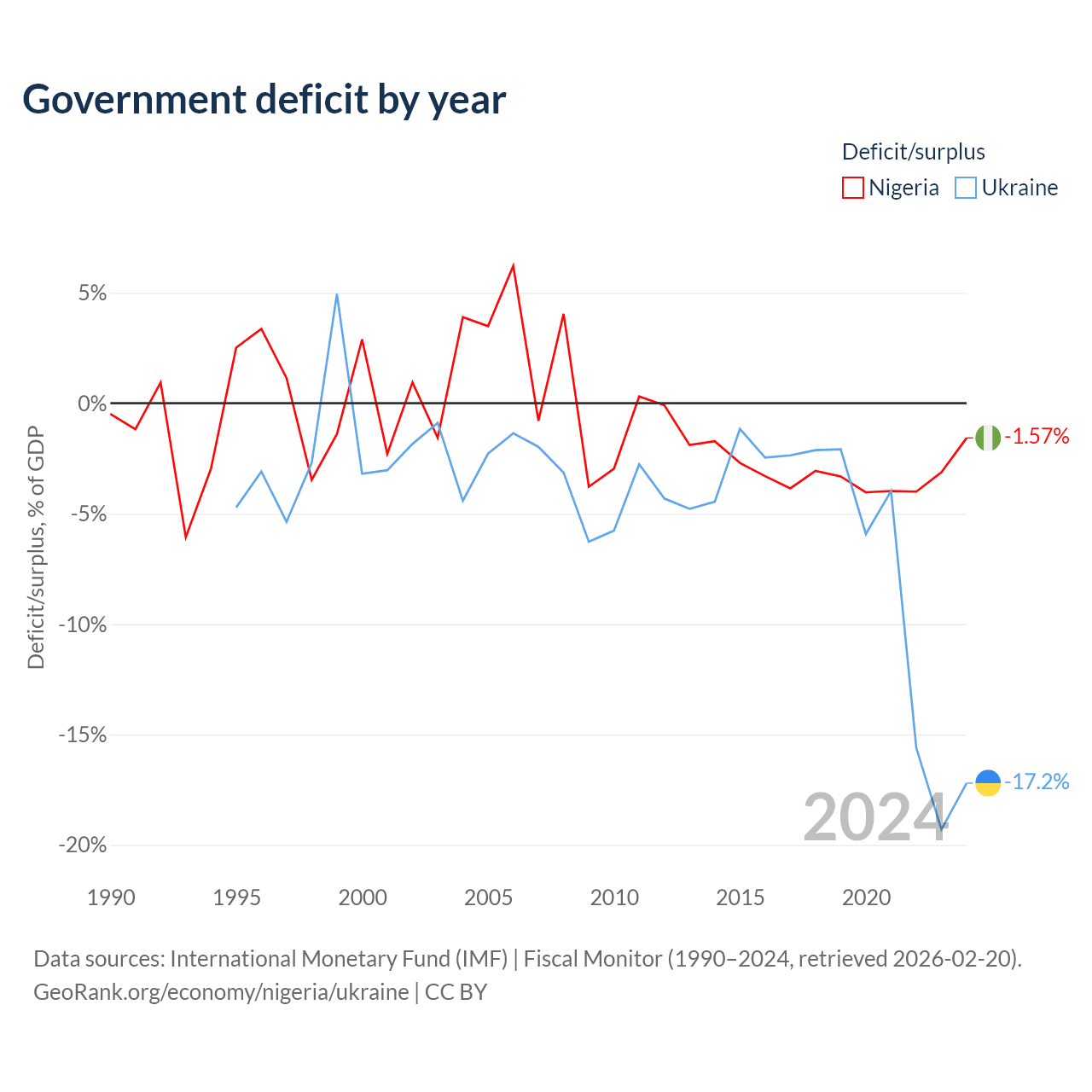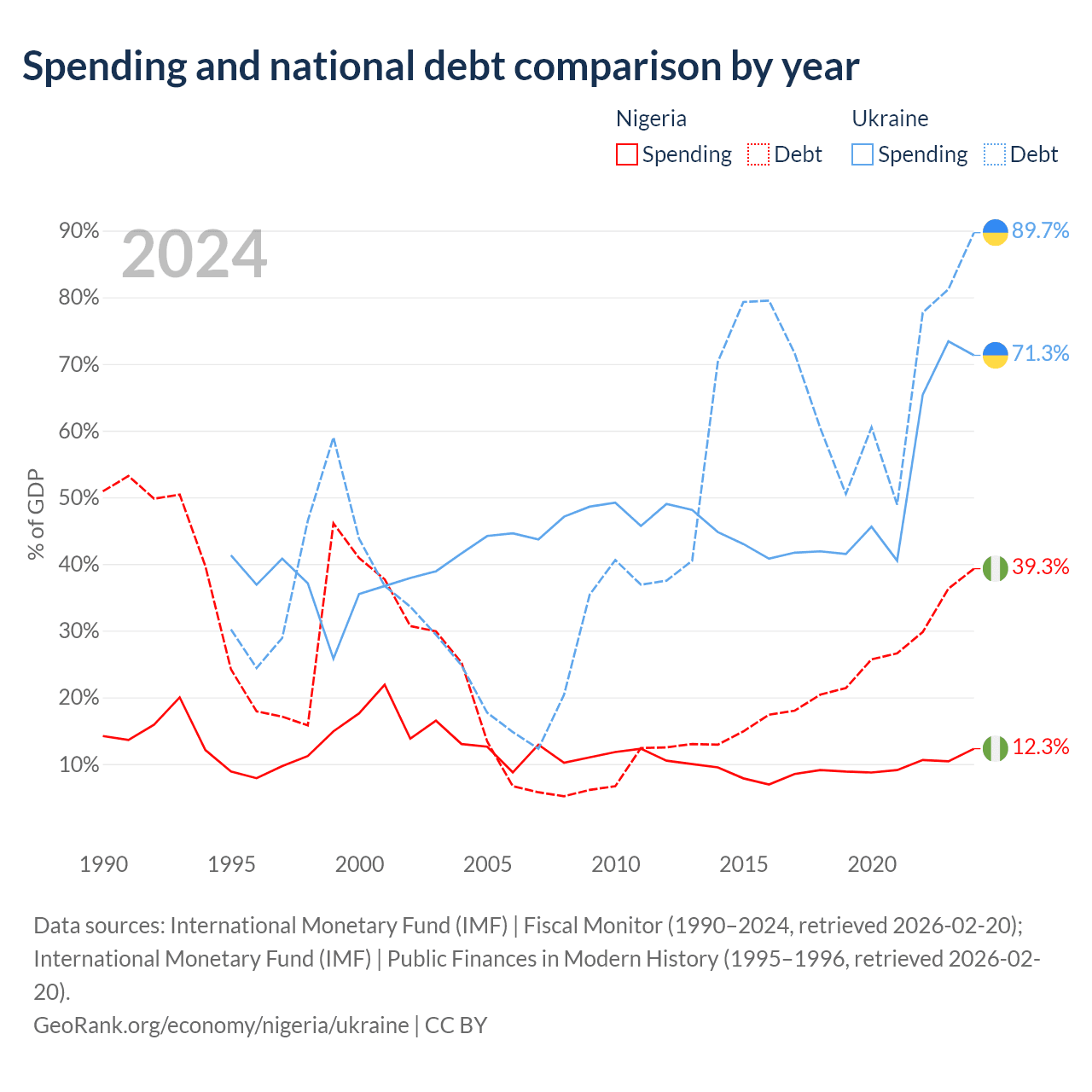 Nigeria has $99.2B in government debt (39.3% of GDP), compared to $171B (89.7% of GDP) in Ukraine.