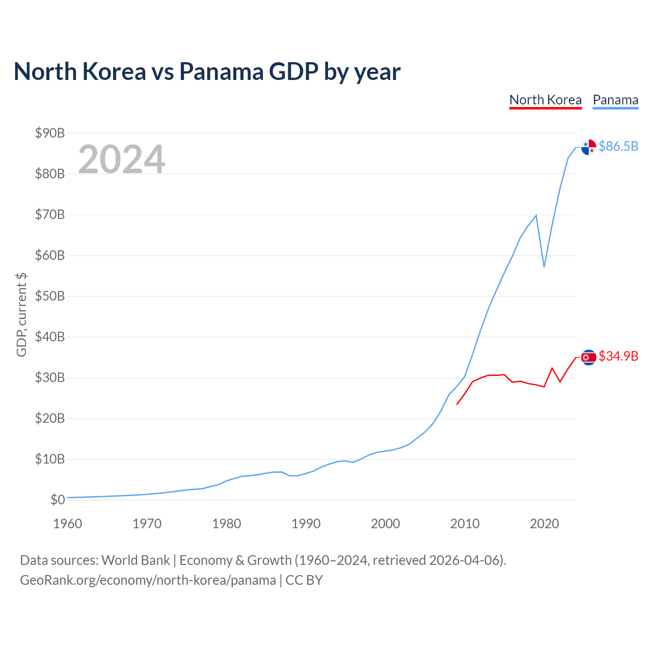 North Korea vs Panama GDP by year