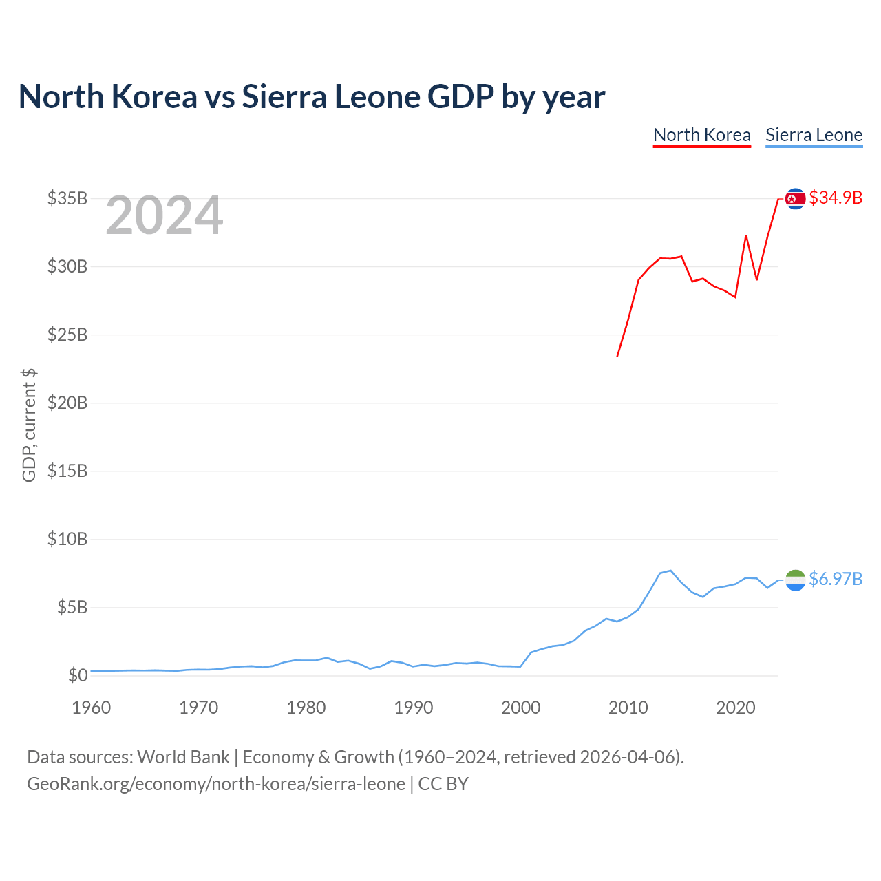 North Korea vs Sierra Leone GDP by year