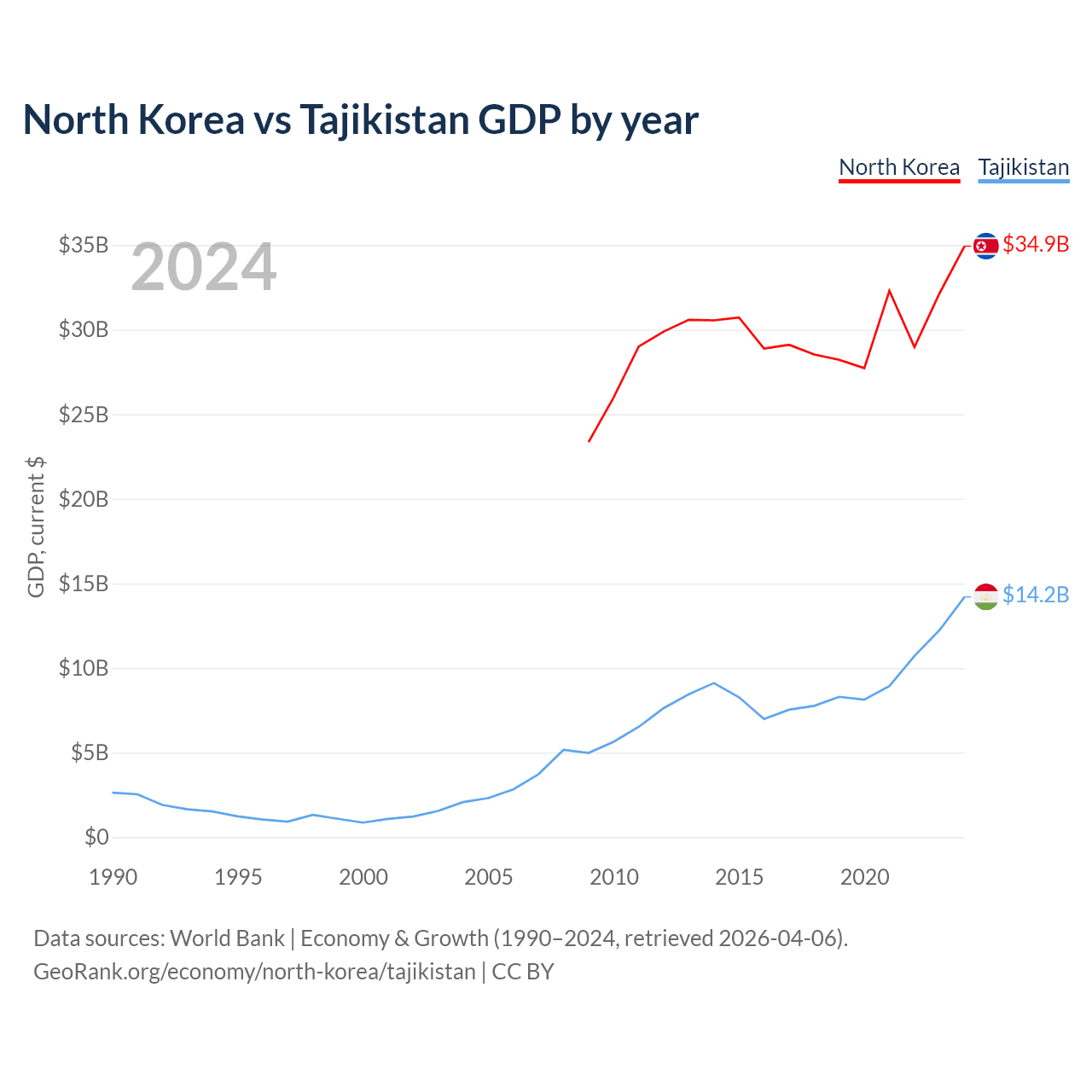 North Korea vs Tajikistan GDP by year
