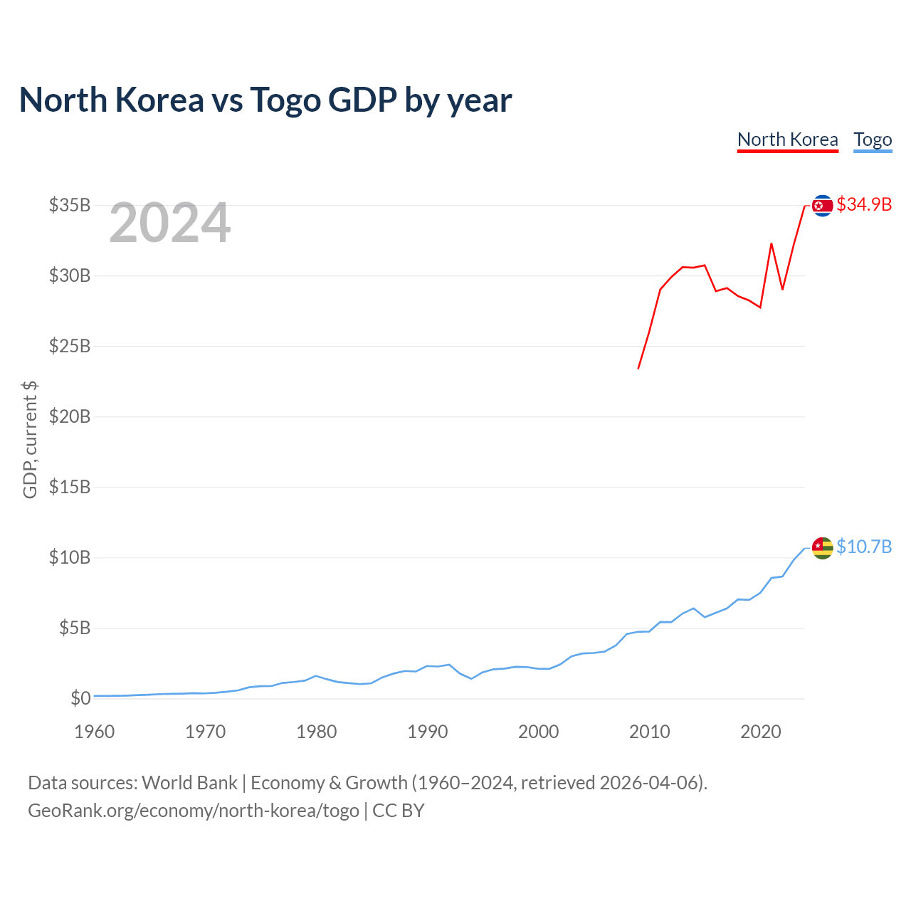 North Korea vs Togo GDP by year