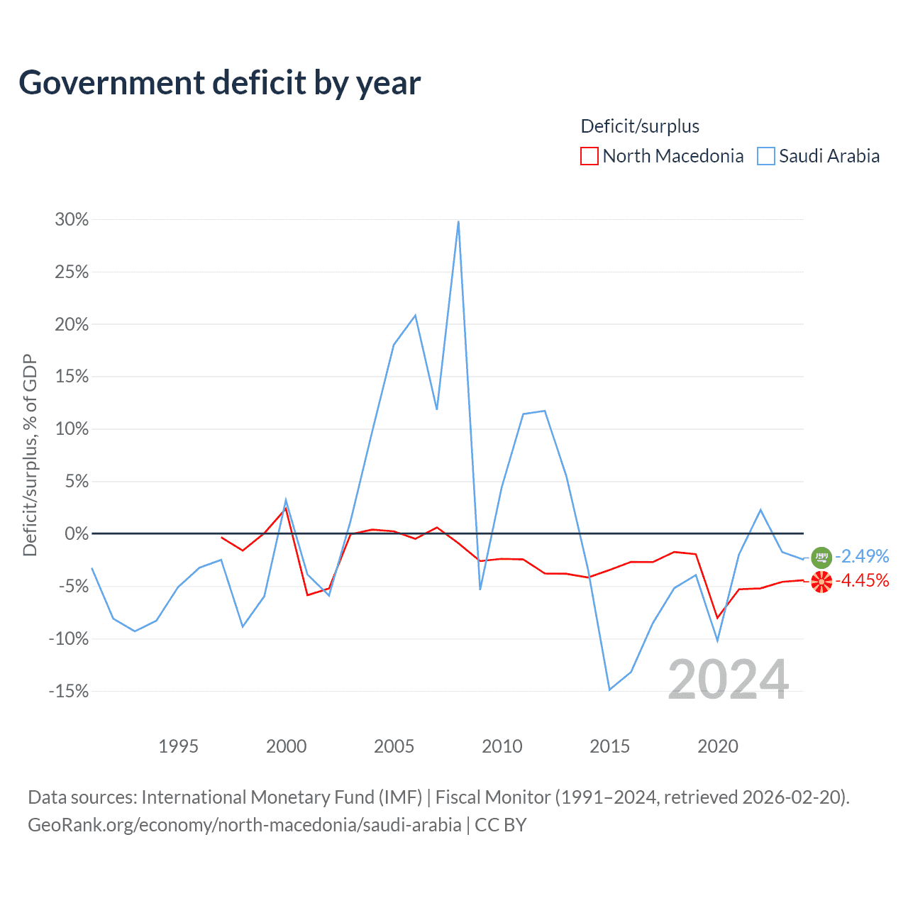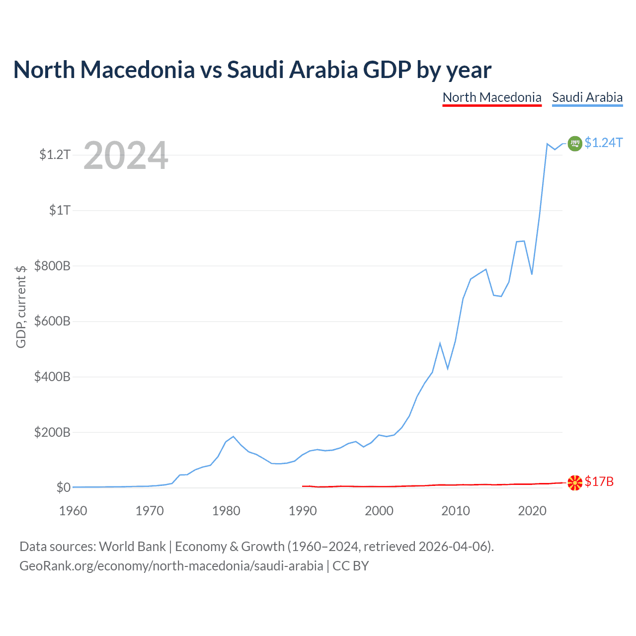 North Macedonia vs Saudi Arabia GDP by year