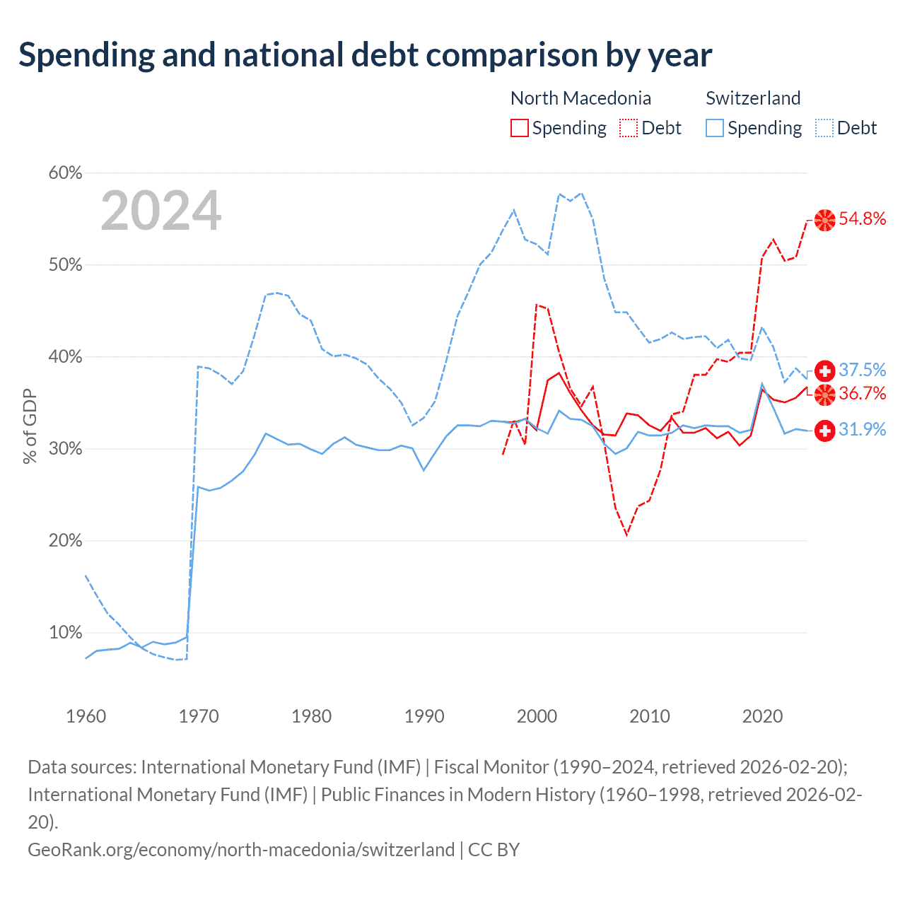 North Macedonia has $9.3B in government debt (54.8% of GDP), compared to $351B (37.5% of GDP) in Switzerland.
