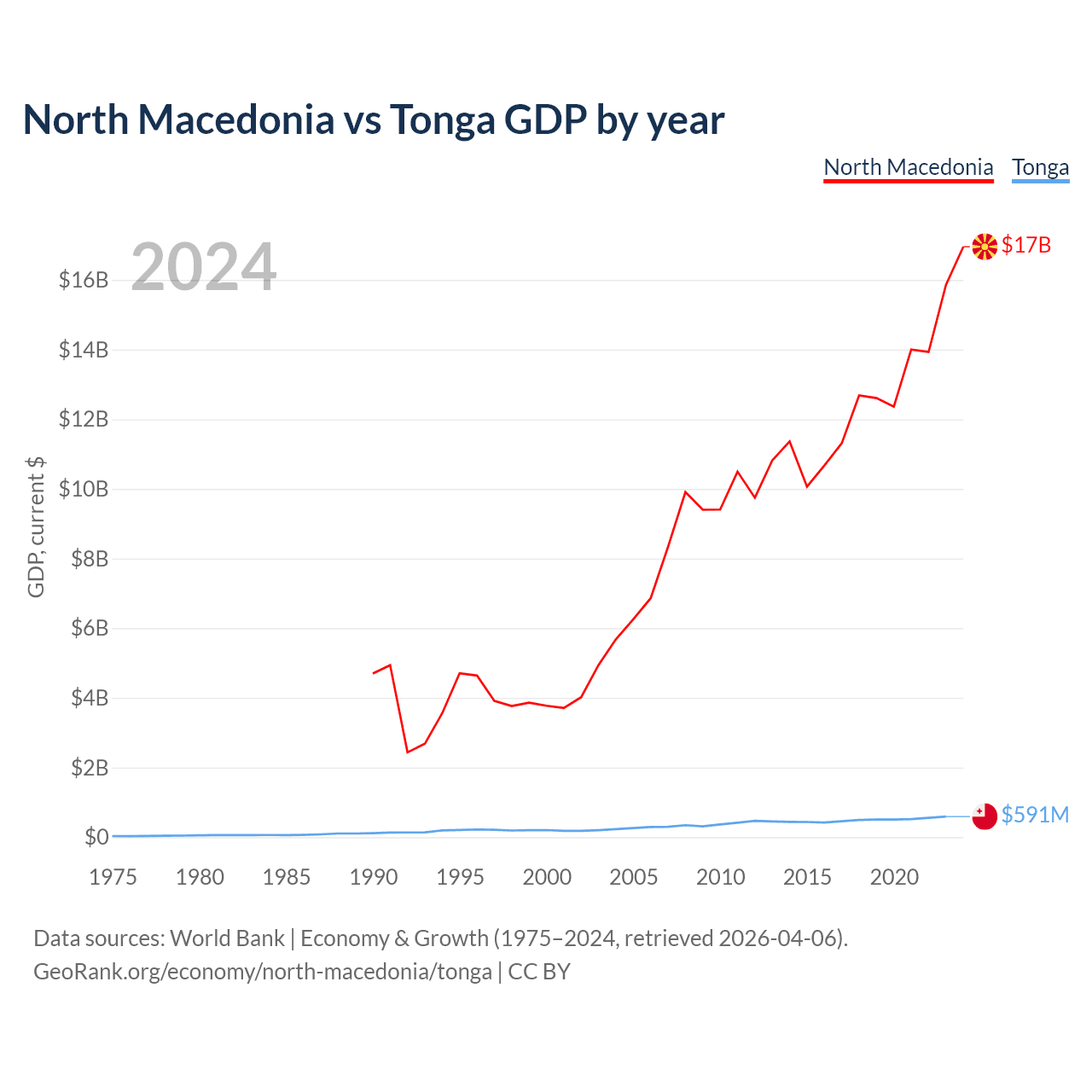 North Macedonia vs Tonga GDP by year