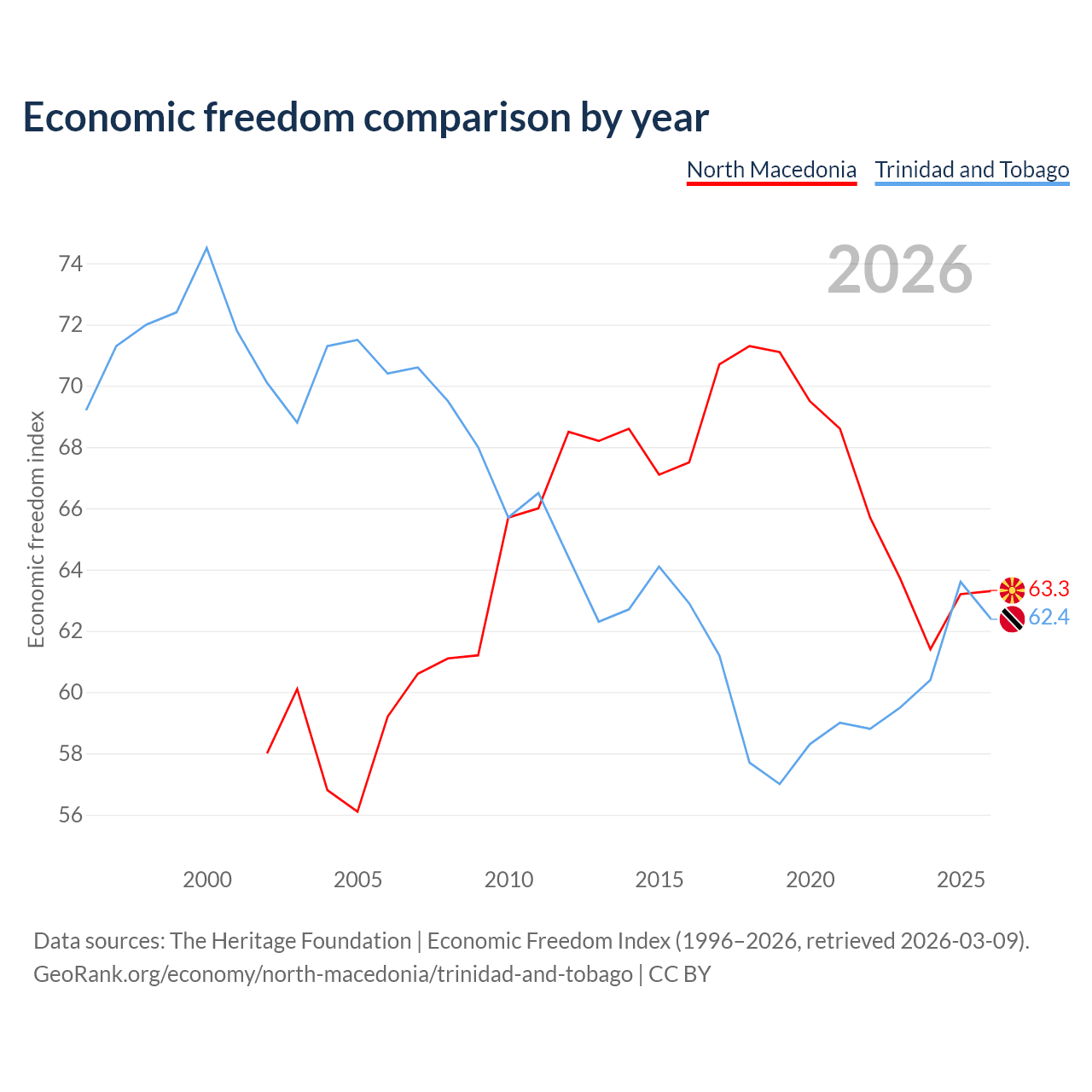 Data sources: The Heritage Foundation | Economic Freedom Index (1996–2026, retrieved 2026-03-09).