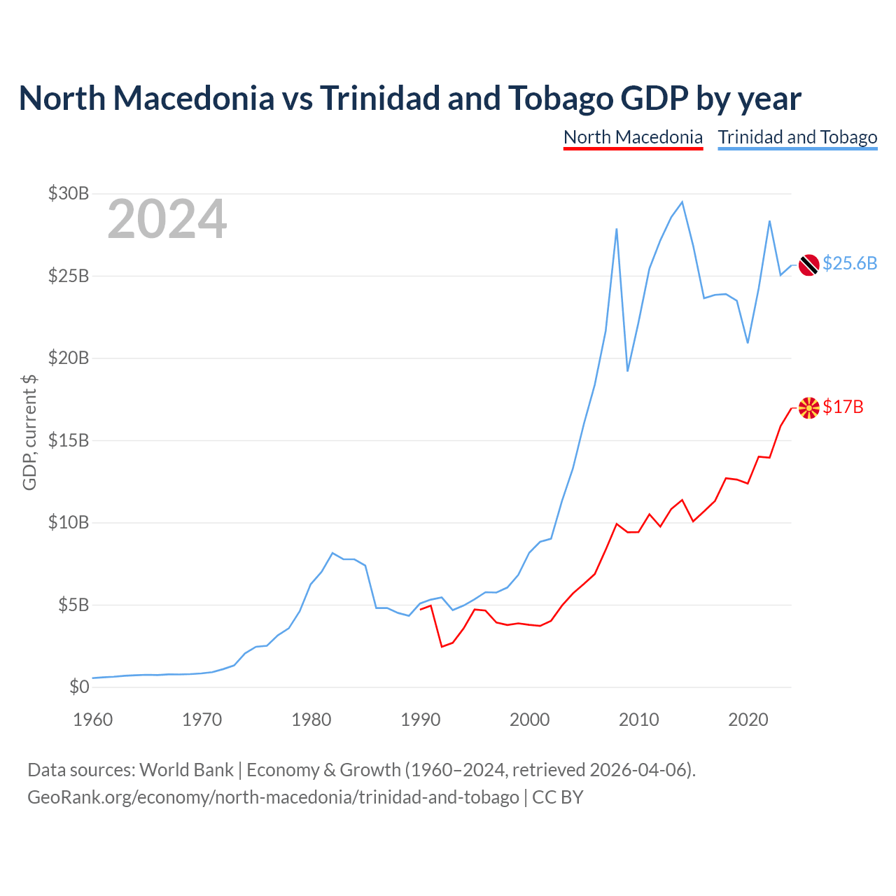 North Macedonia vs Trinidad and Tobago GDP by year