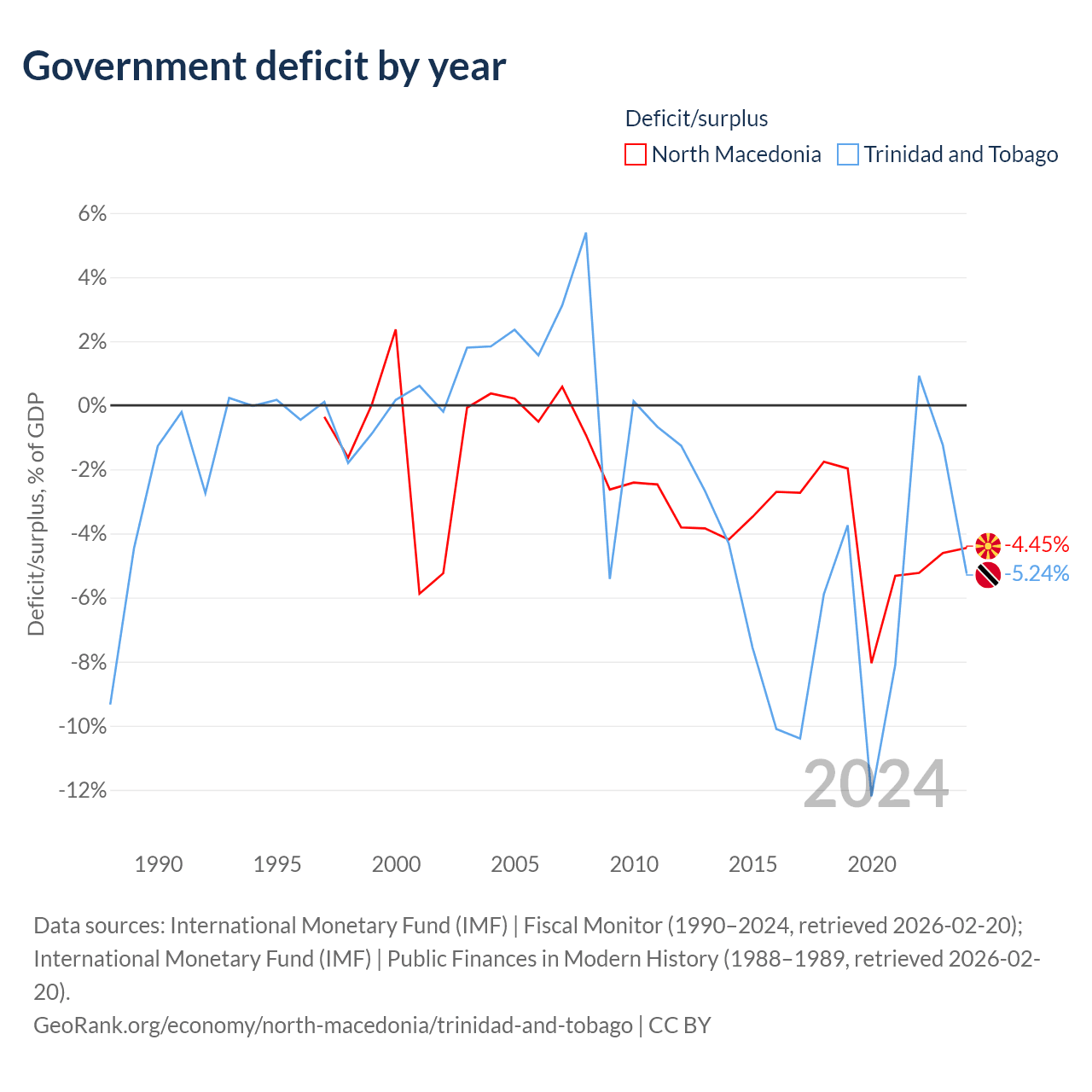 - International Monetary Fund (IMF) | Fiscal Monitor (1990–2024, retrieved 2026-02-20)
