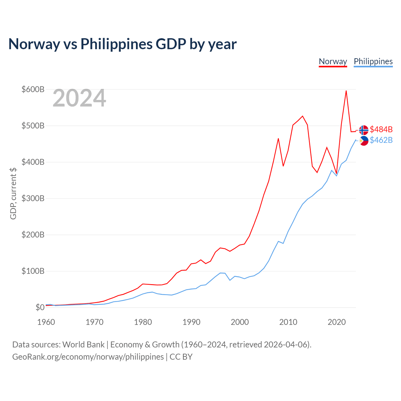 Norway vs Philippines GDP by year