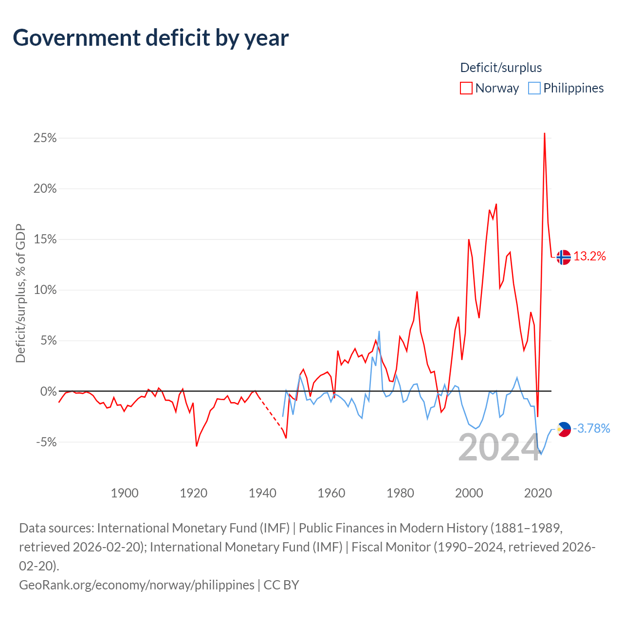 - International Monetary Fund (IMF) | Public Finances in Modern History (1881–1992, retrieved 2026-02-20)