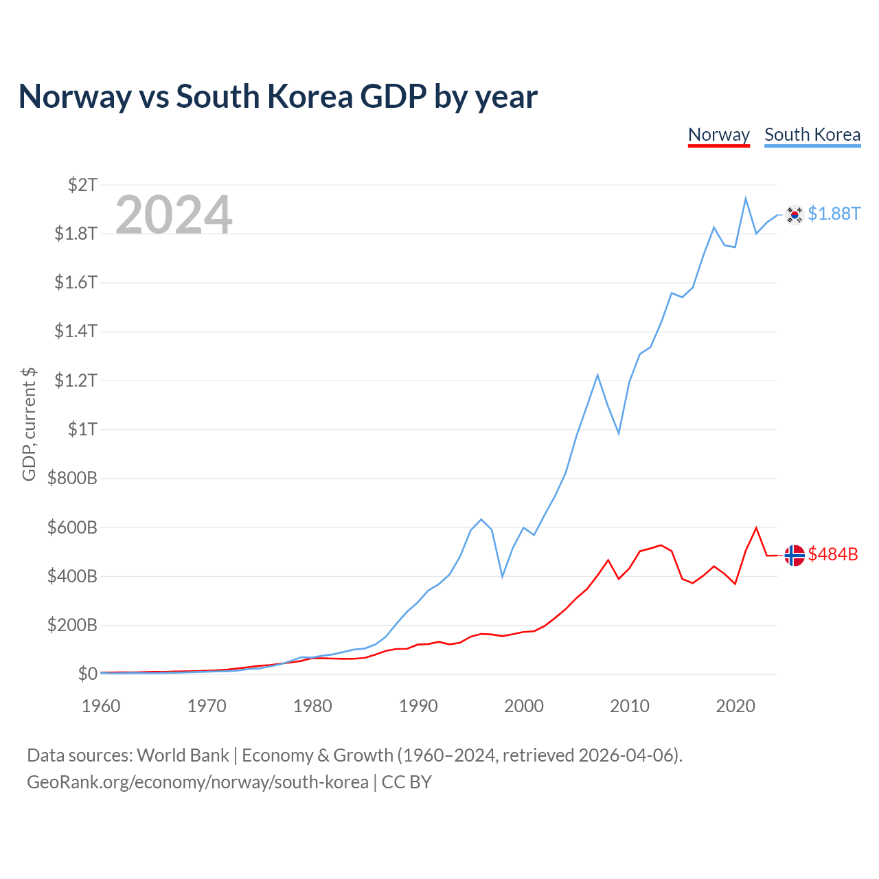 Norway vs South Korea GDP by year