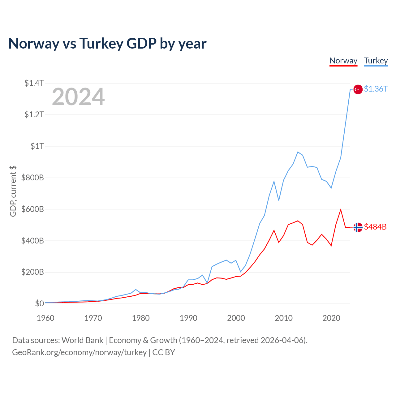 Norway vs Turkey GDP by year