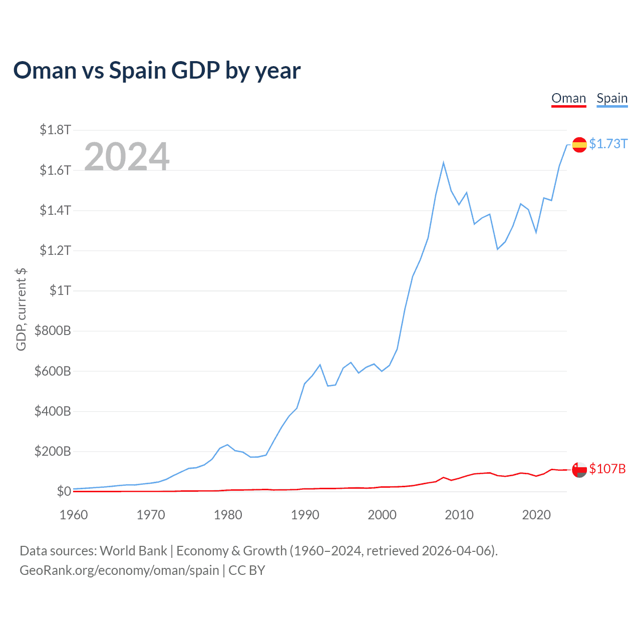 Oman vs Spain GDP by year