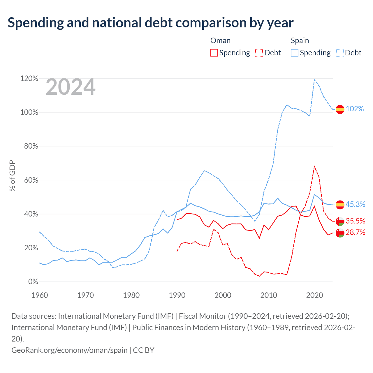 Oman has $38B in government debt (35.5% of GDP), compared to $1.75T (101.6% of GDP) in Spain.