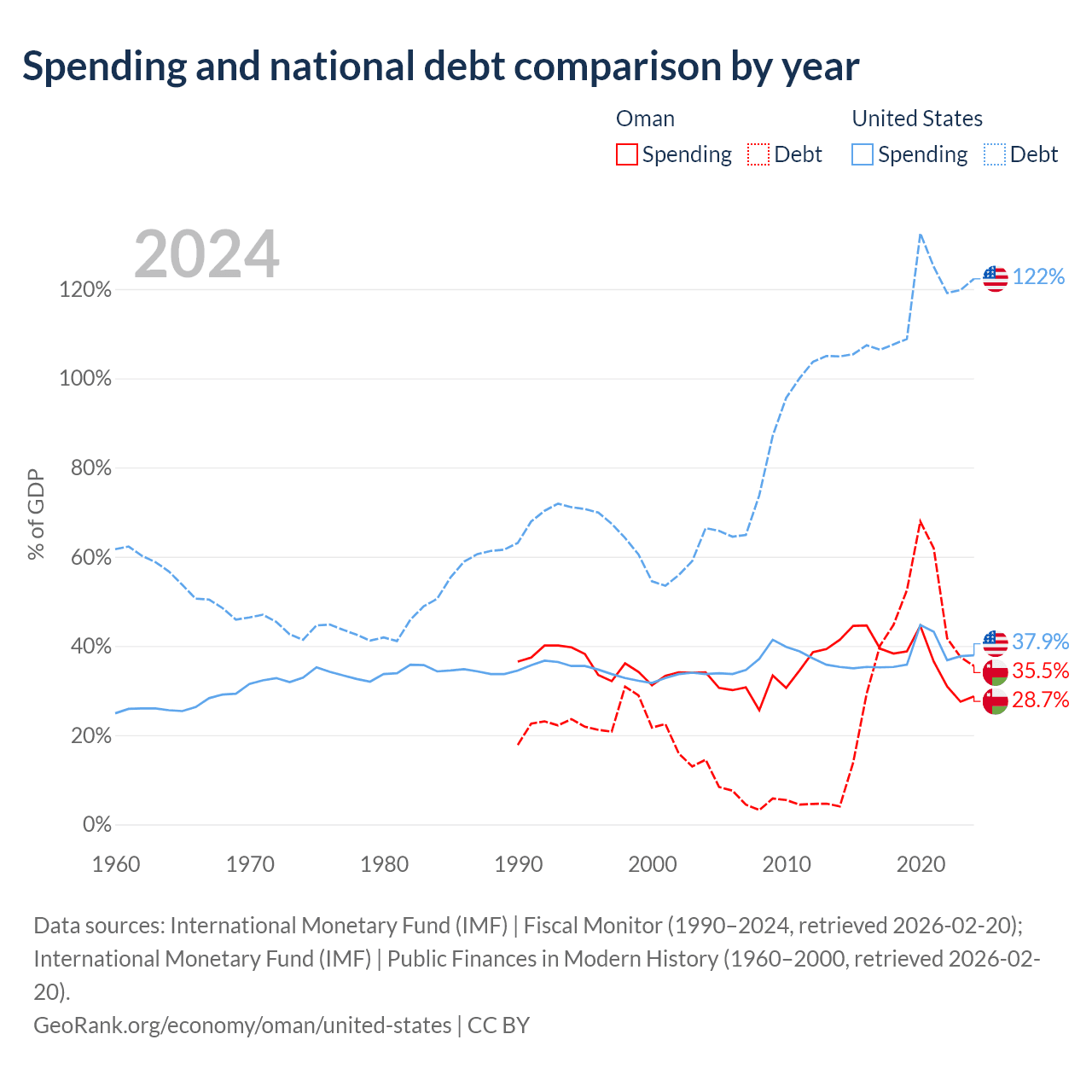 Oman has $38B in government debt (35.5% of GDP), compared to $35.2T (122.3% of GDP) in the United States.