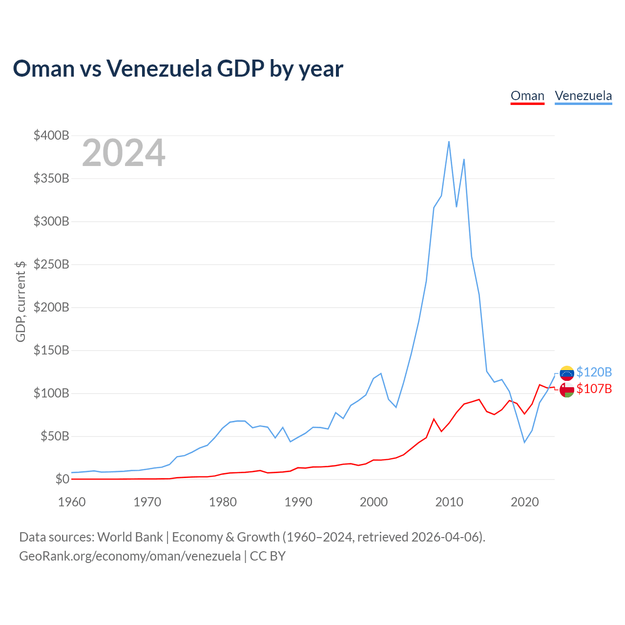 Oman vs Venezuela GDP by year
