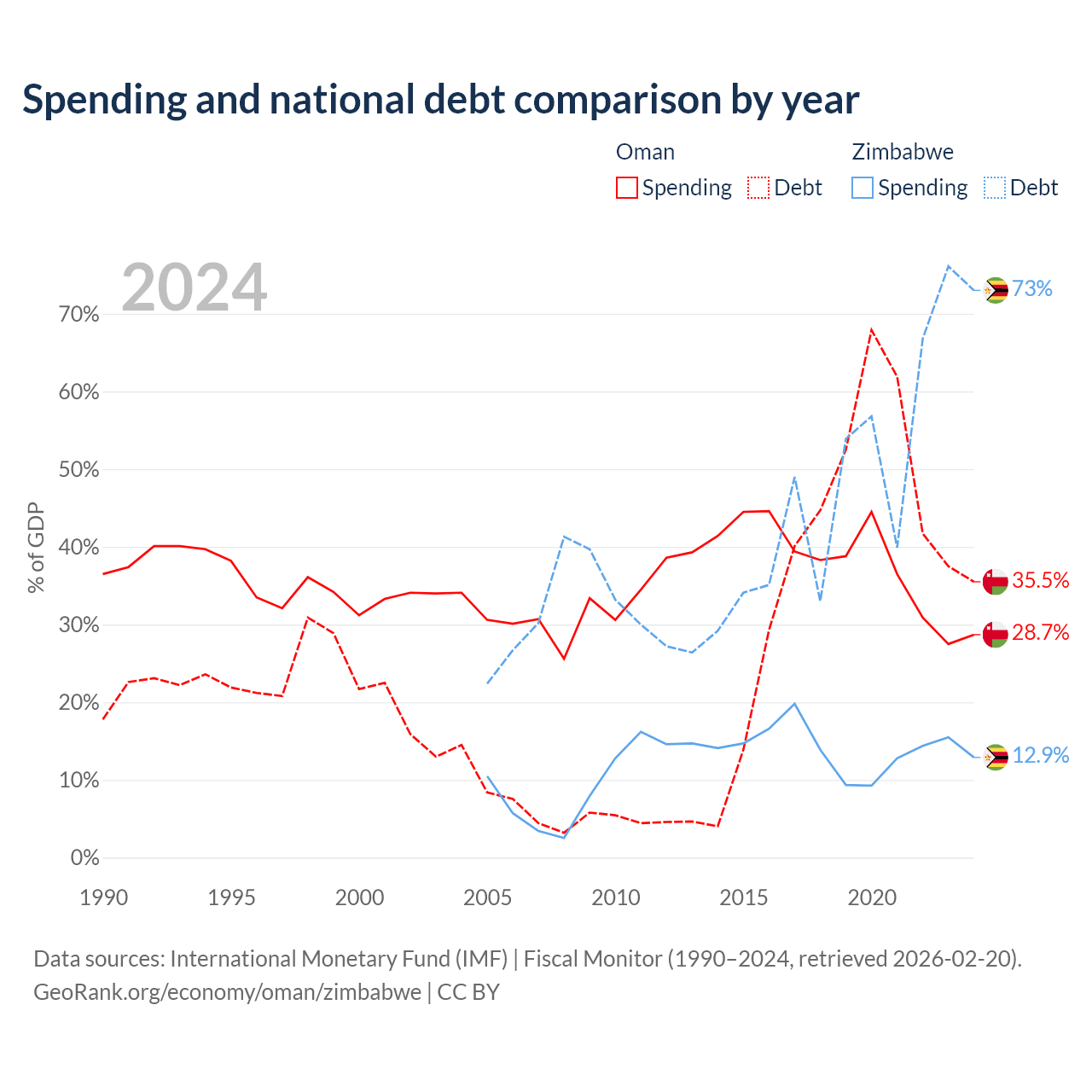 Oman has $38B in government debt (35.5% of GDP), compared to $30.3B (73% of GDP) in Zimbabwe.