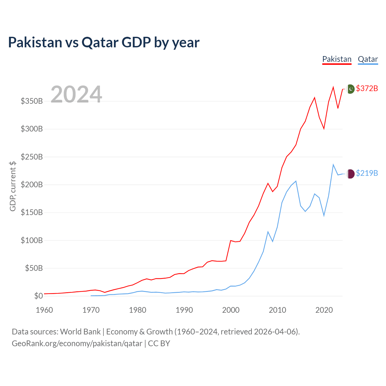 Pakistan vs Qatar GDP by year